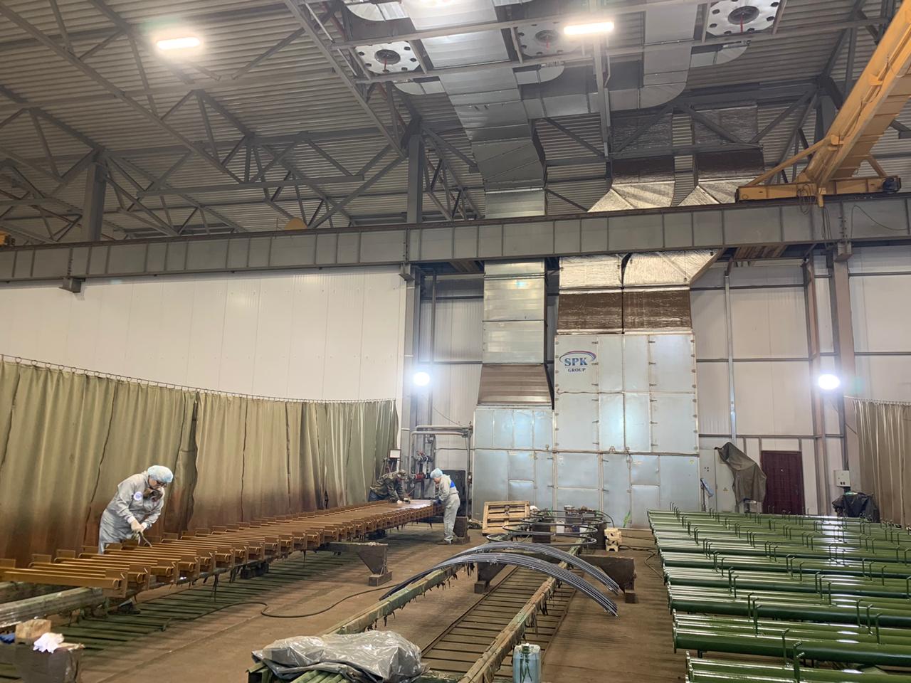 Назначение данного проекта зоны открытой окраски – это обеспечение необходимых условий для производства процесса нанесения ЛКМ на поверхность крупногабаритных изделий (металлоконструкций) в открытом цеховом пространстве. Максимальные размеры окрашиваемых конструкций – 12.200х3.500х2.500 мм.