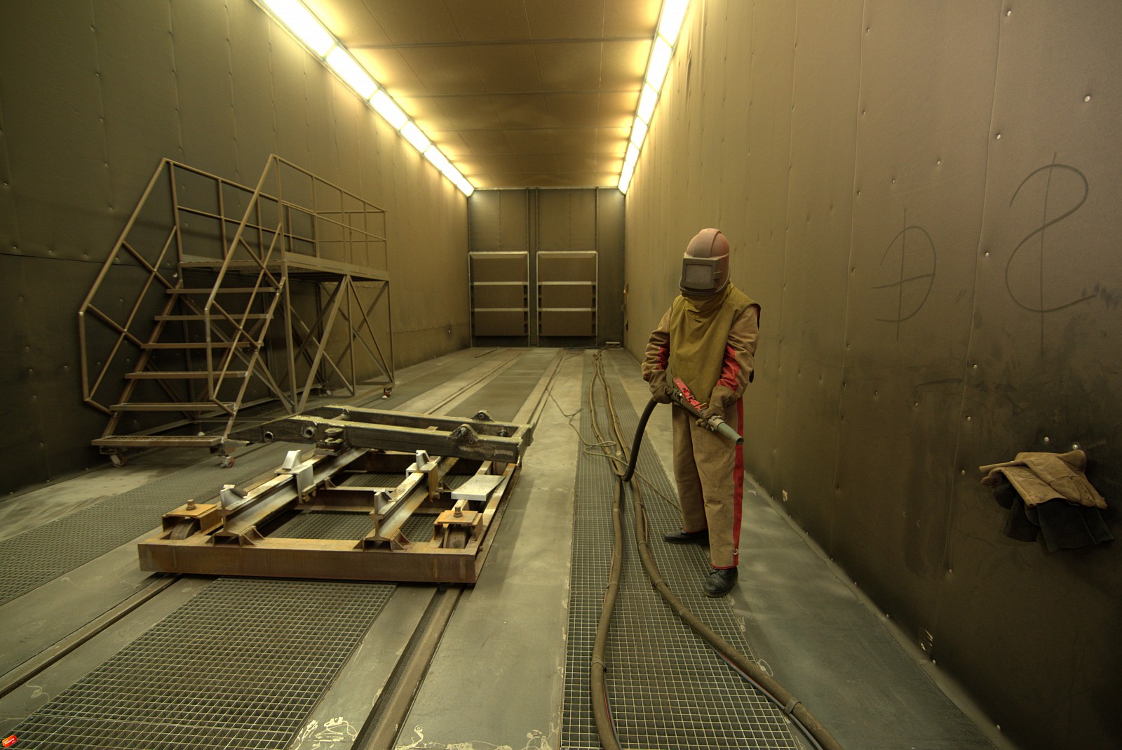 Камера дробеструйная обитаемая предназначена для проведения абразивоструйных работ на поверхности изделий – железнодорожной техники.